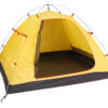 Вход во внутреннюю палатку закрывается тканевым пологом и москитной сеткой для вентиляции в жаркую погоду. Чтобы в критический момент не перепутать молнии выхода и москитной сетки, они имеют различный цвет: красная молния открывает выход, а черная — москитную сетку. Молнии крупные, 8-го размера. На замках молнии удобные петельки оранжевого и черного цвета. Открытые пологи входа можно свернуть и зафиксировать петлей. При полностью закрытом входе внутренняя палатка надежно защищает от пауков, комаров и змей. Старайтесь держать внутреннюю палатку всегда закрытой.
